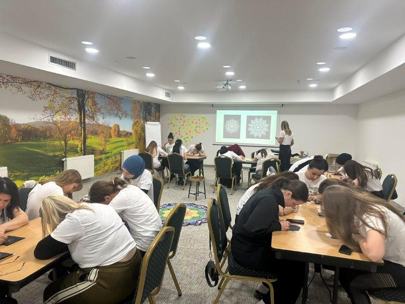 The program also included a trip to the capital of Bosnia and Herzegovina and a guided hiking tour on Trebević, where participants enjoyed nature, panoramic views, and strengthened team spirit. (Re)creative activities such as art therapy, mandala drawing, and yoga sessions provided opportunities for introspective connection, stress relief, and self-care.